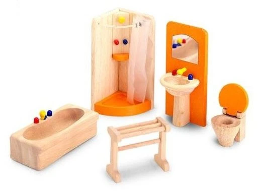 Complete badkamerinrichting voor het poppenhuis.
