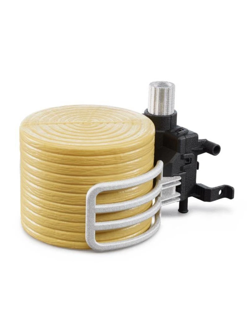 Maak de balenpers vast aan je speelgoed tractor of verreiker, en draai eenvoudig aan het bovenste tandwiel waardoor de grijper opent en sluit.