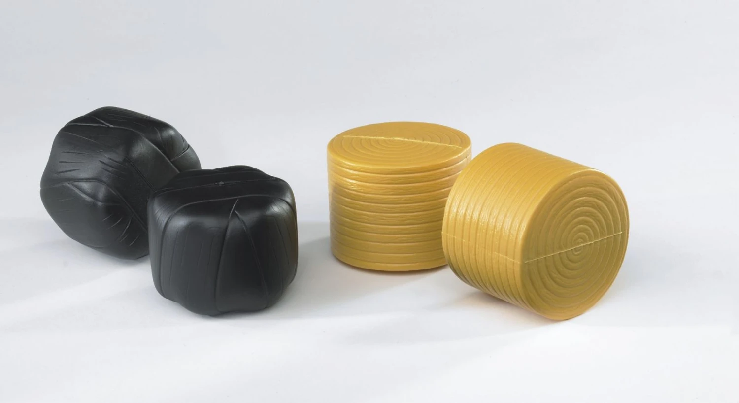 2 hooibalen ingeseald en 2 ronde hooibalen niet ingeseald.