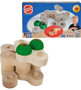 De Ketting bouwstenen van HEROS zijn een geheel nieuw type constructiespeelgoed voor kinderen vanaf 1,5 jaar. Onderscheiden met de Toy Award 2014. Gemaakt uit beukenhout en uitermate geschikt voor kleine kinderhanden. De speciale verbindingsconstructie maakt het peuters mogelijk mooie bouwwerken te maken welke ook nog bewogen kunnen worden. Deze set bestaat uit 11 delen.