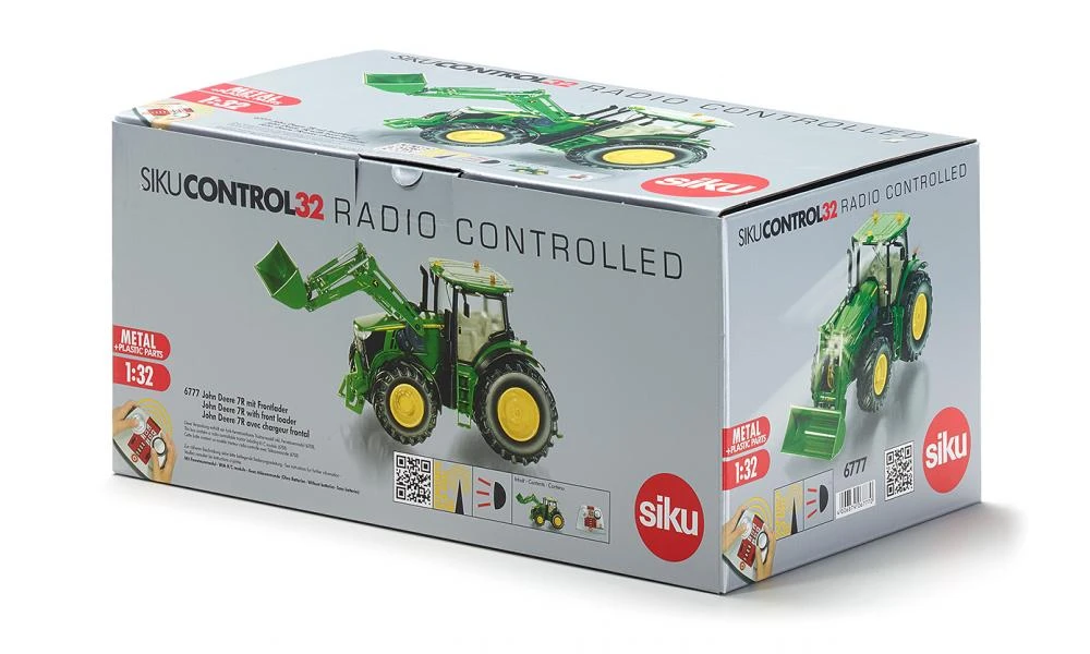 Siku 6777 Tractor John Deere 7R met voorlader 1 : 32 . Radiografisch bestuurbare John Deere tractor van Siku in schaal 1 : 32.
