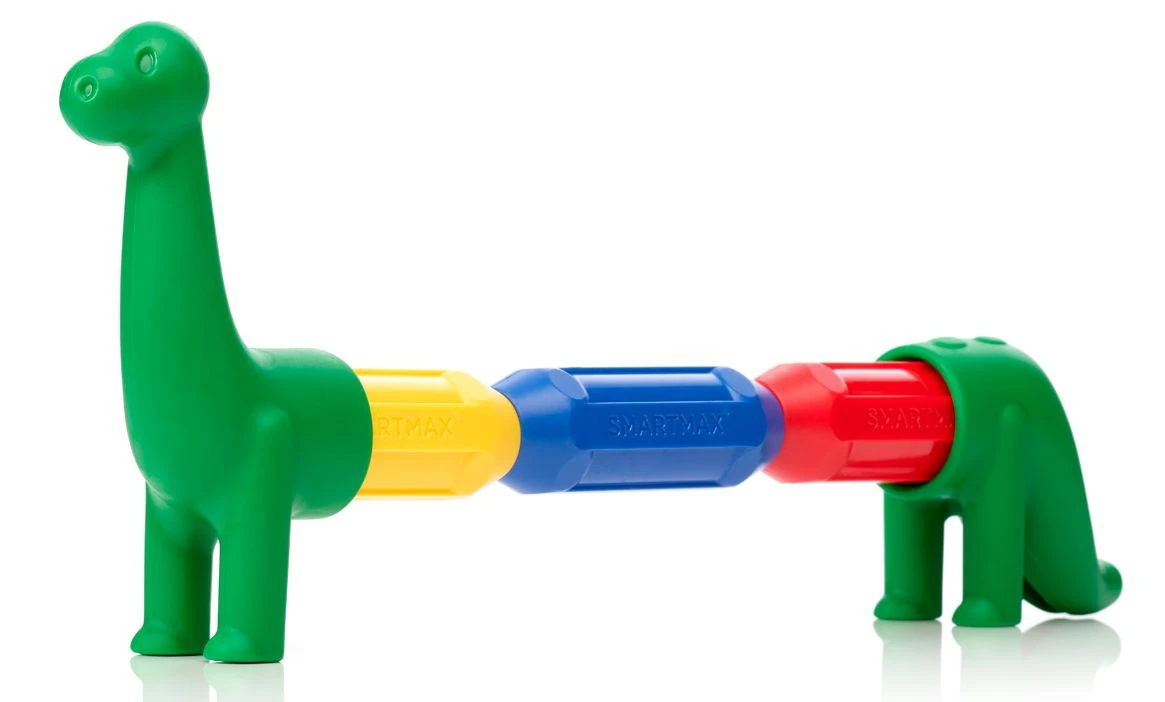 De extra grote, zachte onderdelen van de dieren klikken eenvoudig op de staven.Jonge kinderen (+12 maanden) kunnen op een veilige manier de magie van het magnetisme ontdekken met de “My First’ collectie van SMARTMAX. De extra grote, zachte onderdelen van de dieren klikken eenvoudig op de staven. Maak 5 verschillende dino’s of combineer naar keuze om de gekste dieren te creëren.